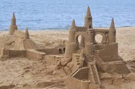 Les châteaux de sable, ça sent bon l’enfance et les vacances, l’iode et la lutte contre le temps, celui de la marée qui monte. Il y a des châteaux tout simples, quatre tours et puis s’en vont mais aussi plus que des châteaux, des villes entières, sculptures d’autant plus grandioses qu’elles sont éphémères.
